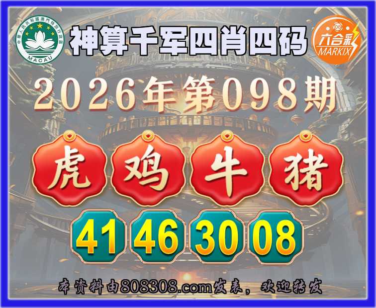 098期: 🚣『神算千军』 🚣四肖四码🚣【鸡牛猪】【41.46.30.08】开:虎17准上榜高手