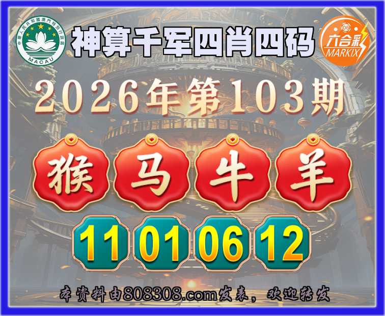 103期: 🚣『神算千军』 🚣四肖四码🚣【猴马羊】【11.01.06.12】开:牛06准上榜高手
